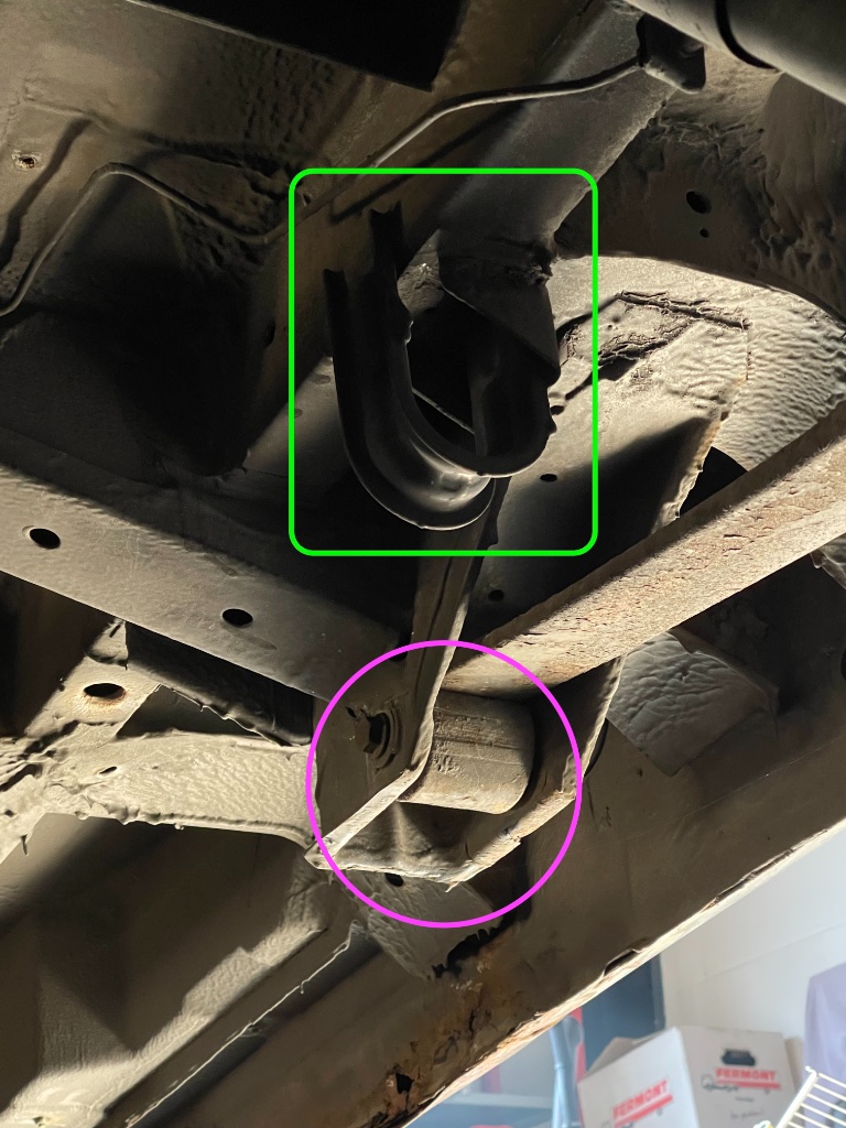 Eigentlich sollten zwischen der VA und der Getriebekonsole noch eine Konsole am Rahmenlängsträger angeschweißt sein, unter dem ein Aufstellbock platziert werden kann. Konnte ich auf deinen Bildern jedoch nicht identifizieren.