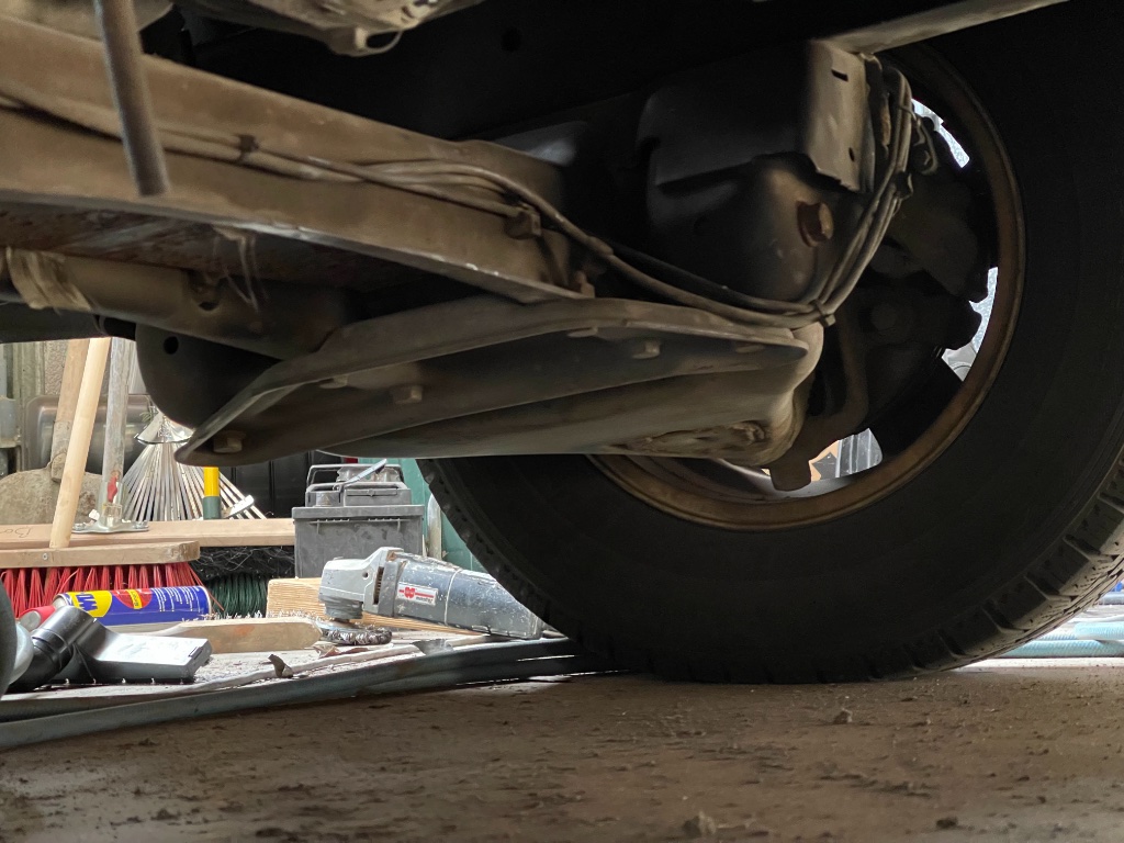 Unter der Hinterachse temporär nur unter den Federn anheben, sonst verbiegst du den Achskörper.