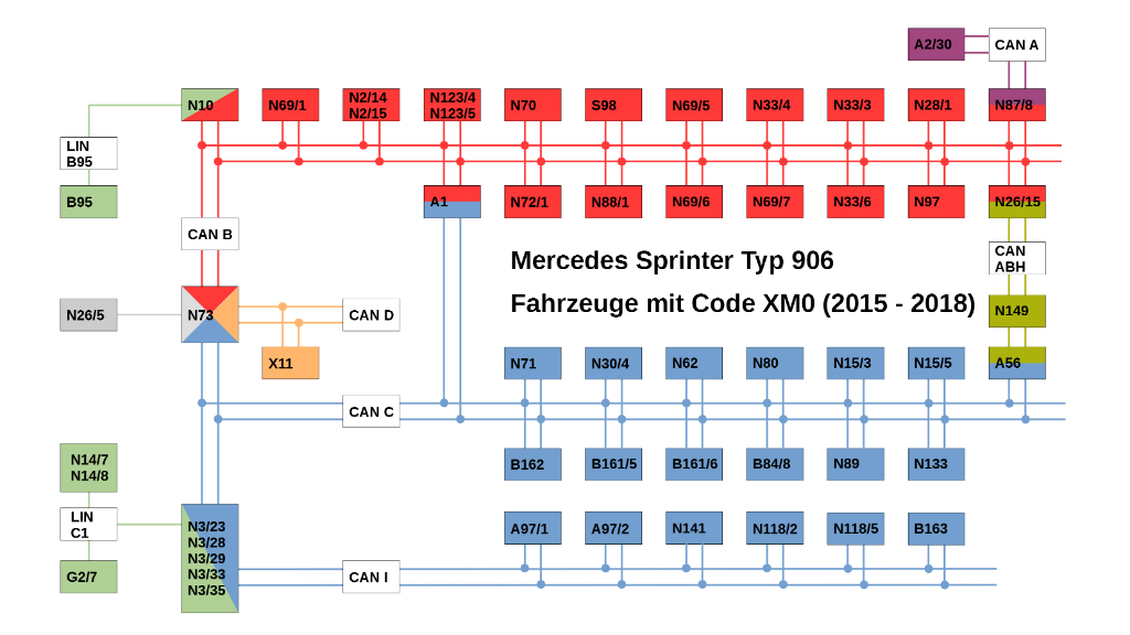 Die Steuergeräte im 906 sind in einem weitverzweigte Netzwerk miteinander verbunden. Hier die Übersicht zum 906 vorMOPF.