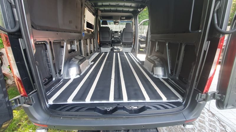 Nein. Das habe ich nicht vor. Ich kann alles noch auf dem Boden verlegen, da im Bereich ab der Schiebetüre nach Hinten ein doppelter Boden eingebaut wird!