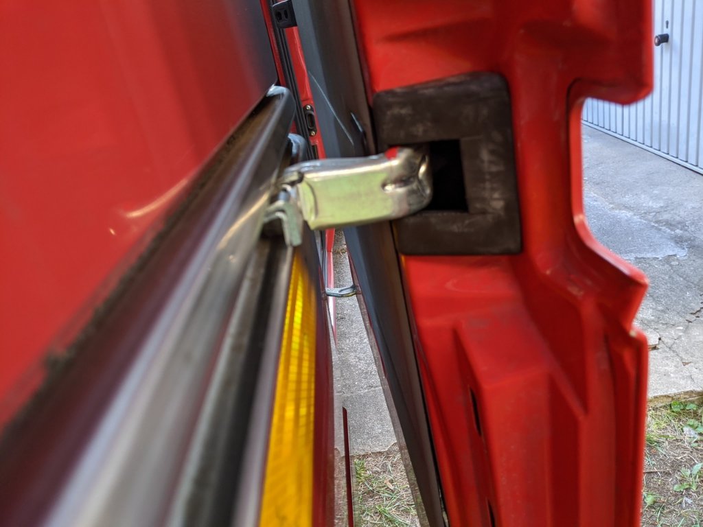 ich habe den Laufwagen jetzt endlich getauscht. So ganz einfach ist das nicht. Es musste ein ordentliches Stück Blech entfernt werden, damit der lange Laufwagen passt. Die Position ist in der Tür schon vorgegeben, kann man also nicht verfehlen. Wir haben noch 3 Eisen in die Tür geschweißt, da die Stabilität durch das fehlende Stück ordentlich litt. Außerdem habe ich eine zweite Unterlage ( siehe https://volkswagen.7zap.com/de/rdw/lt+l ... 43-843010/ (19)) hinter den Schließkeil geschraubt, da die Tür sonst zu weit "vorn" ist. Da musste man auch nochma bisschen gegenhauen, damit das schön fluffig ist.
