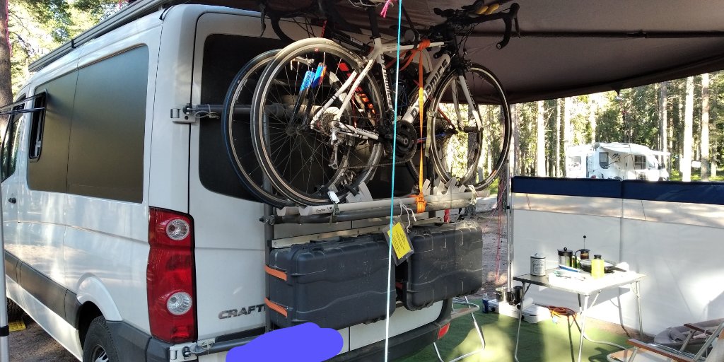 Ich wollte das so haben, wegen der Option von Staukisten und die Fahrräder aus dem Gefahrenbereich hinterm Wagen, wenn es Mal ruppeliger wird.