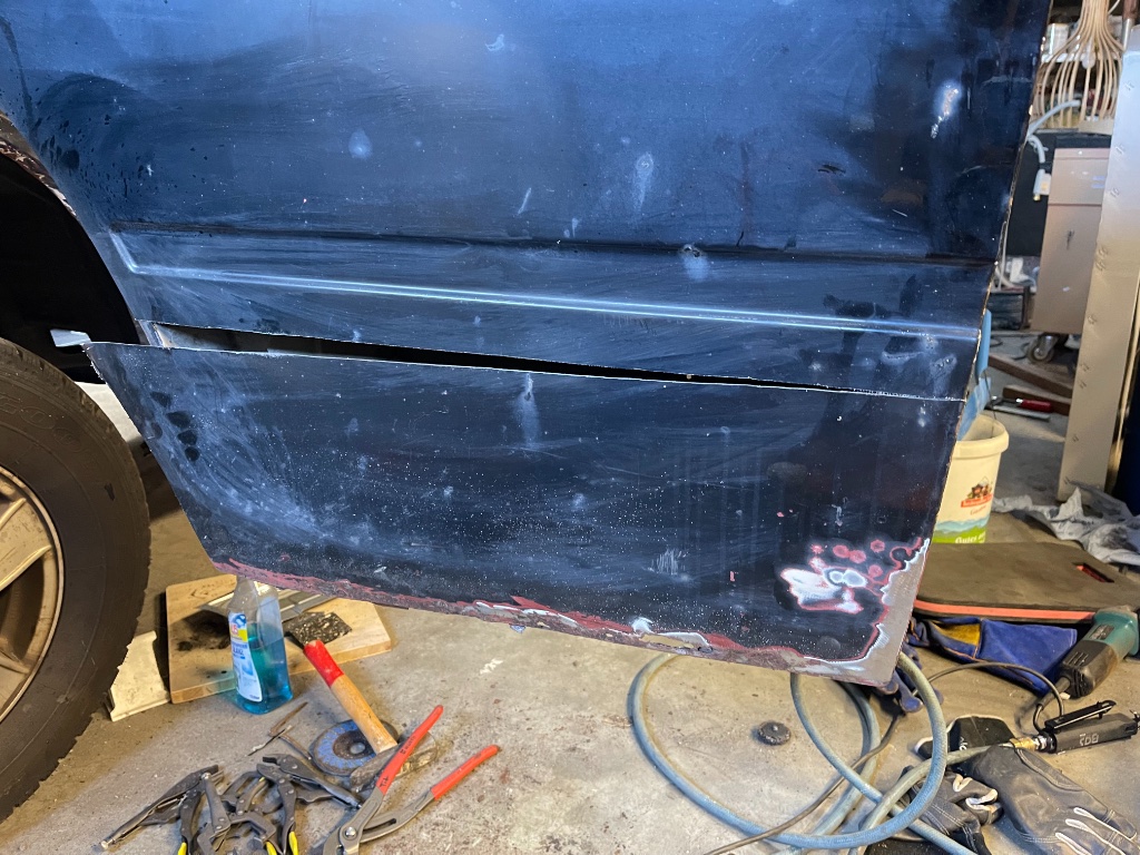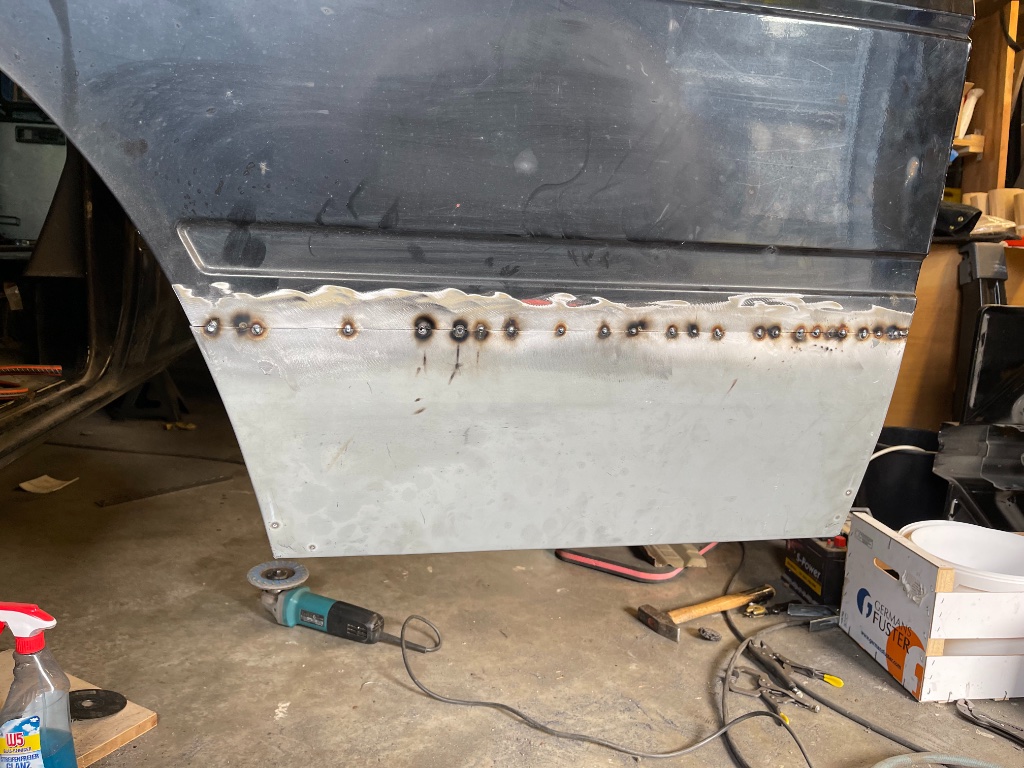 Die untere verrostete Kante ist ziemlich weggerostet und mir da jetzt wieder ein Blech zurecht zu biegen, schweissen und spachteln scheint mir zu aufwendig zu seien, da man da unten auch ziemlich passgenau arbeiten muss mit dieser Gummi Lippe und der Leichen Wölbung ... (Habe leider auch nichts gefunden wie man es am besten macht... ), die Sache mit den Reparaturblechen scheint auch sehr aufwendig zu sein da man 2 Blechen (innen und aussen ) zusammen schweißen muss...
