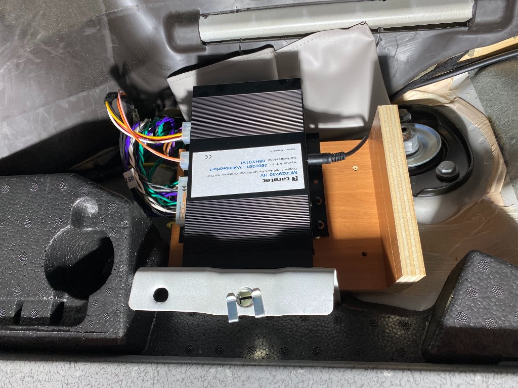Im Fußraum war/ist zwar anstelle des Wagenhebers deren Verstärker auf Holzresten geschraubt, jedoch nicht das Rückfahrkabel
