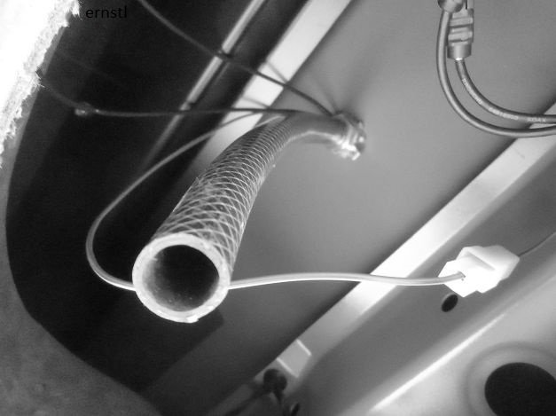 Lampe eingebaut und siehe da: direkt senkrecht drüber ist das Gewinde der Antenne - also dort, wo auch das Wasser mittig raus lief. Kann natürlich auch Zufall sein. Meine Lösung für die Zukunft war ein 22cm langes Stück Gartenschlauch, das jetzt auf dem Gewinde der Antenne sitzt und durch das Loch geführt ist. Sollte die Sache doch mal wieder undicht werden, kommt nichts mehr auf die Platine.