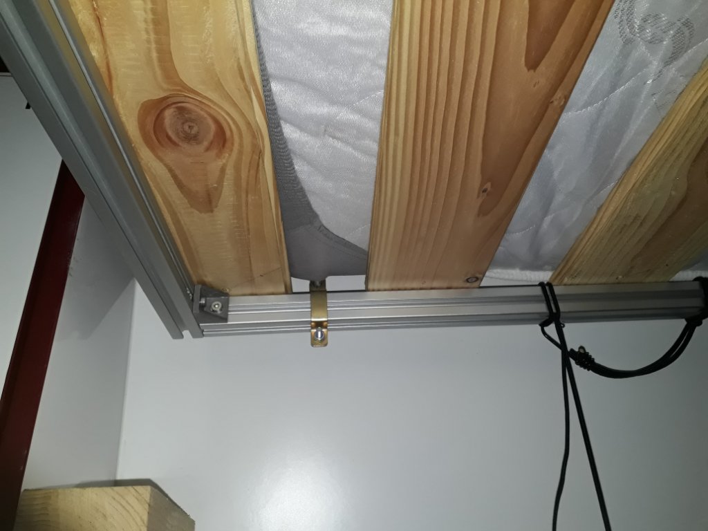 Damit wird mein Bett (gelochte 20mm Multiplex mit Matratze) nach oben gezogen.