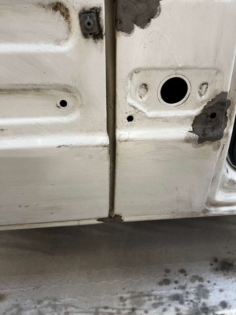 Auch mal die Trittstufen-Verkleidung in den vorderen Türen rausnehmen, oben die Schrauben im Mattenrand lösen und in der Trittfläche die 3Abdeckungsstopfen suchen,rauspuhlen und die Schrauben darunter lösen. Dann kannst du die Kunststoffeinsätze rausnehmen....wunder dich nicht ! Da kannst du direkt weiter entrosten.