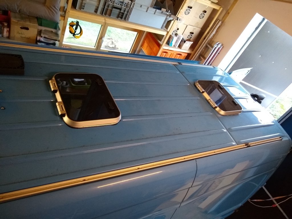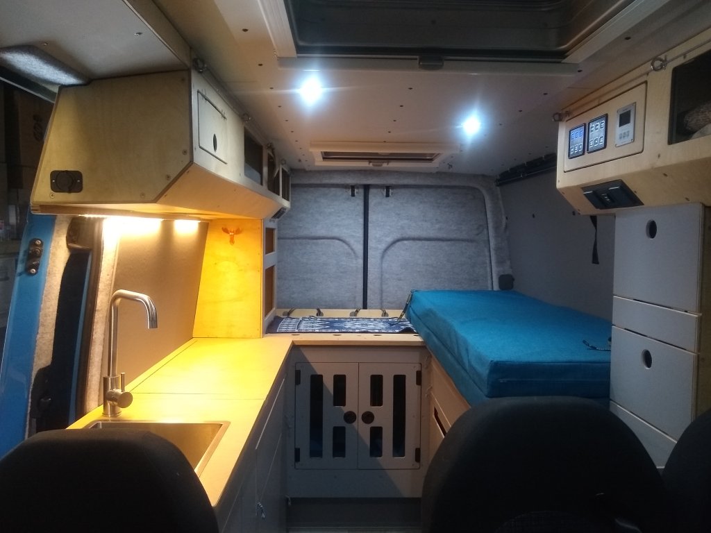 Zwei/drei/vier Kleinigkeiten fehlen noch: die 150Ah Litium-Batterie (hat gerade Lieferverzug) und die Twin-Heizung 2x2000W von Tigerexped, damit wir auch im richtigen Winter autark stehen können, Licht auf´m Dach für Skandinavien im Winter, + ca. 40l Wasser, ein paar Türchen nicht nur für den Advent.