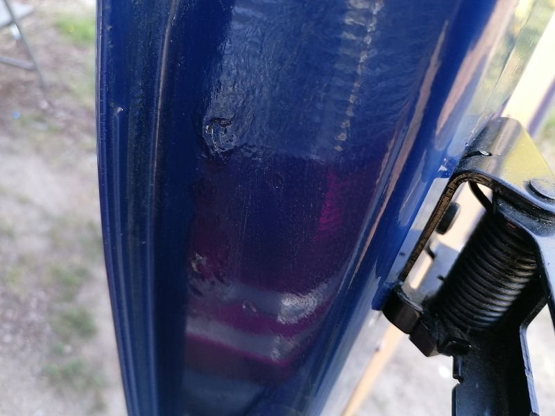 Guten Morgen, du musst mal die komplette Verkleidungen hinten abbauen. Dahinter befindet sich ein Verstärkungsspant, dort reisst die Punktschweissung ab und die Kräfte beim Türe aufmachen wirken dann komplett auf den Seitenbereich wo das Türfangband angeschraubt ist, dadurch entsteht dann der äußere sichtbare riss. Die Türe muss innen auch wieder verschweisst werden, sonst hält es nicht lange, mit dem Schutzgasschweissgerät ist es ein bisschen tricky an die Stelle zu kommen aber es geht irgendwie. Die gebklebten Verstärkungen hab ich mit Karosseriekleber wieder befestigt.