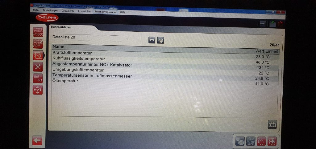 Ich habe im Moment zwar nur das Delphi Diag, aber diue Temperaturen sind plausibel. Differenzdruck DPF ist Null bar bei Standgas. Zu ist er jedenfall nicht. Passt auch zu letzter Regeneration vor 230km.