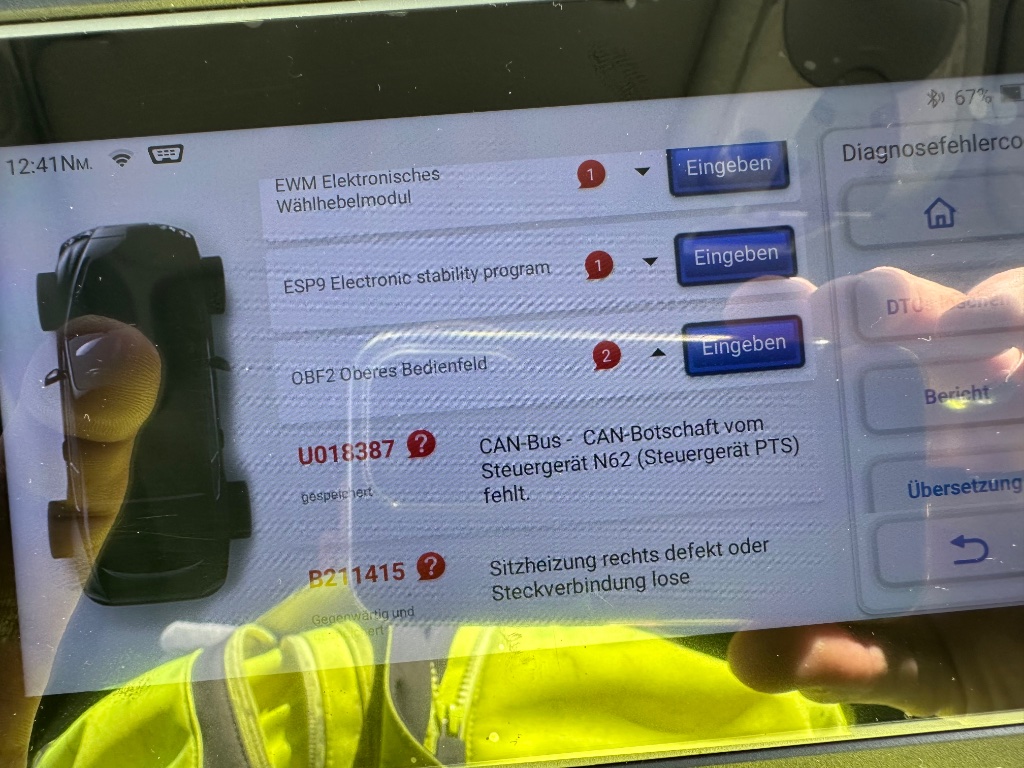 Ich habe mal ein paar Fotos angehängt vom Fehler im Display und vom auslesen mit Codes, vielleicht kann mir ja jemand helfen.