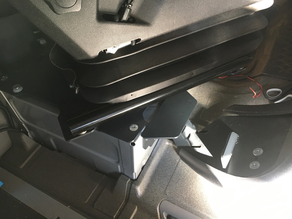 Das Teil wird nach Abflexen der ursprünglichen Aufnahme mittels dreier M10 Schrauben am Sitzkasten angeschraubt.