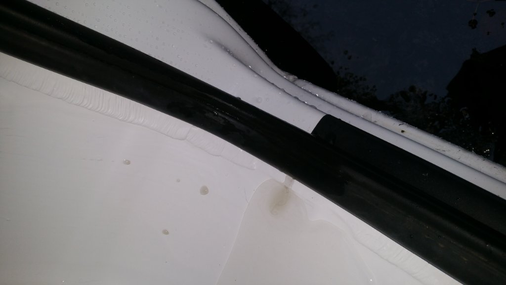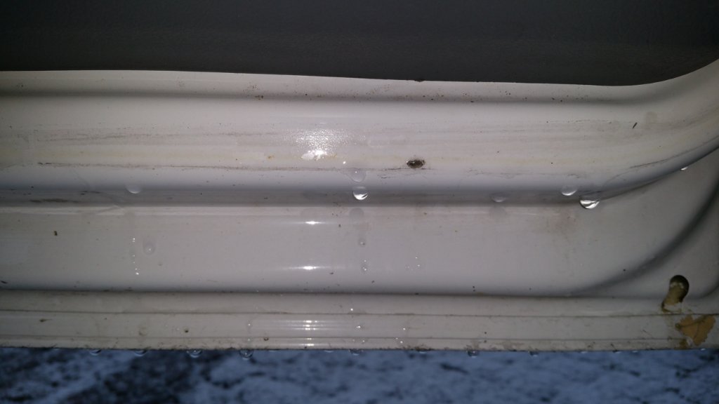 Update ! Nach 2 Tagen Dauerregen hat sich jetzt ein schöner kleiner See auf der frisch gepinselten Trittstufe gebildet.Wagen war nur geparkt und Türen waren während des Regens dauerhaft zu. Das Wasser läuft ÜBER den Gummi der Türdichtung im unteren Bereich in den Innenraum. Der Gummi war ab der Mitte des Radkastens von oben nass. Habe kurz die Türen geöffnet um das genau zu checken. Ich dachte erst der Dichtungsgummi wird vielleicht von Wasser unterwandert..sieht aber nicht danach aus. Desshalb würde auch ein Einkleben der Dichtung meiner Meinung nach nichts bringen..