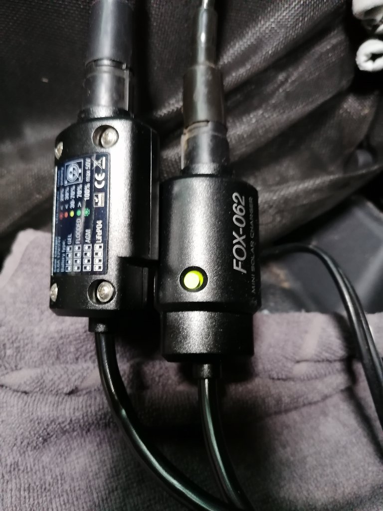Im Stand lade ich über 2 Solarpanels mit je einem integrierten Laderegler die ich in die 12v Buchsen stecke.