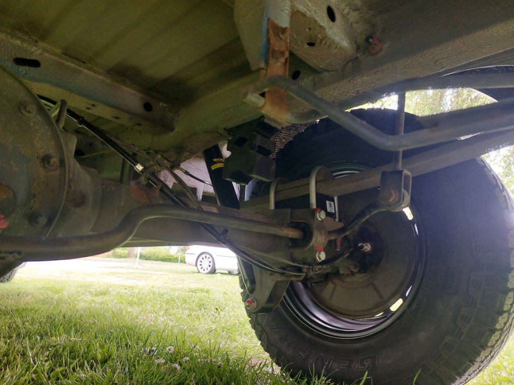 An der Hinterachse habe ich mich nach dem Berechnen der Dämpferlänge vorher / nachher dann doch für die vom Allrad entschieden, da die für den Hinterachsangetriebenen nur noch ca 4 cm ausfahren hätten können zu Leergewichts Nulllage bevor sie in den Anschlag gehen, die Allraddämpfer sind 6cm länger und hätten bei voll eingefederter Achse (Achsrohr an Anschlagpuffer) noch 3cm Weg bevor sie "auf Block" gehen würden.