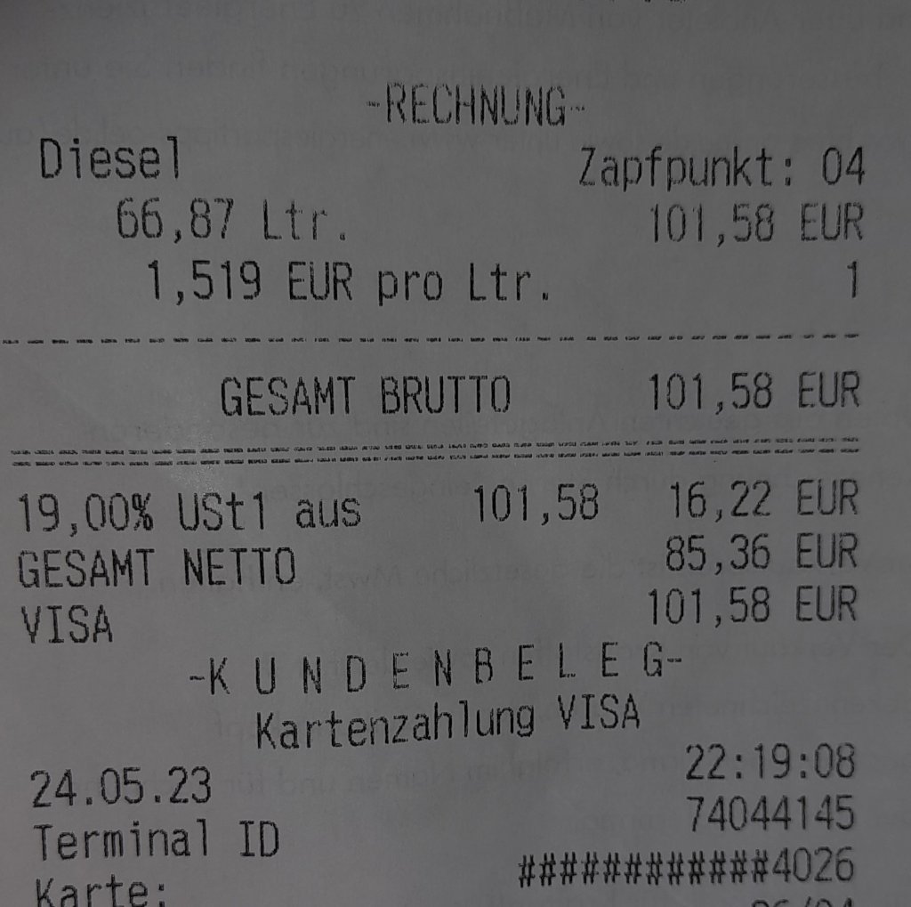 Der 2.0l Crafter (CKTB) single Turbomotor gönnt sich mit Allrad min. 11,5l / 90kmh Skandinavien-Langstrecke.