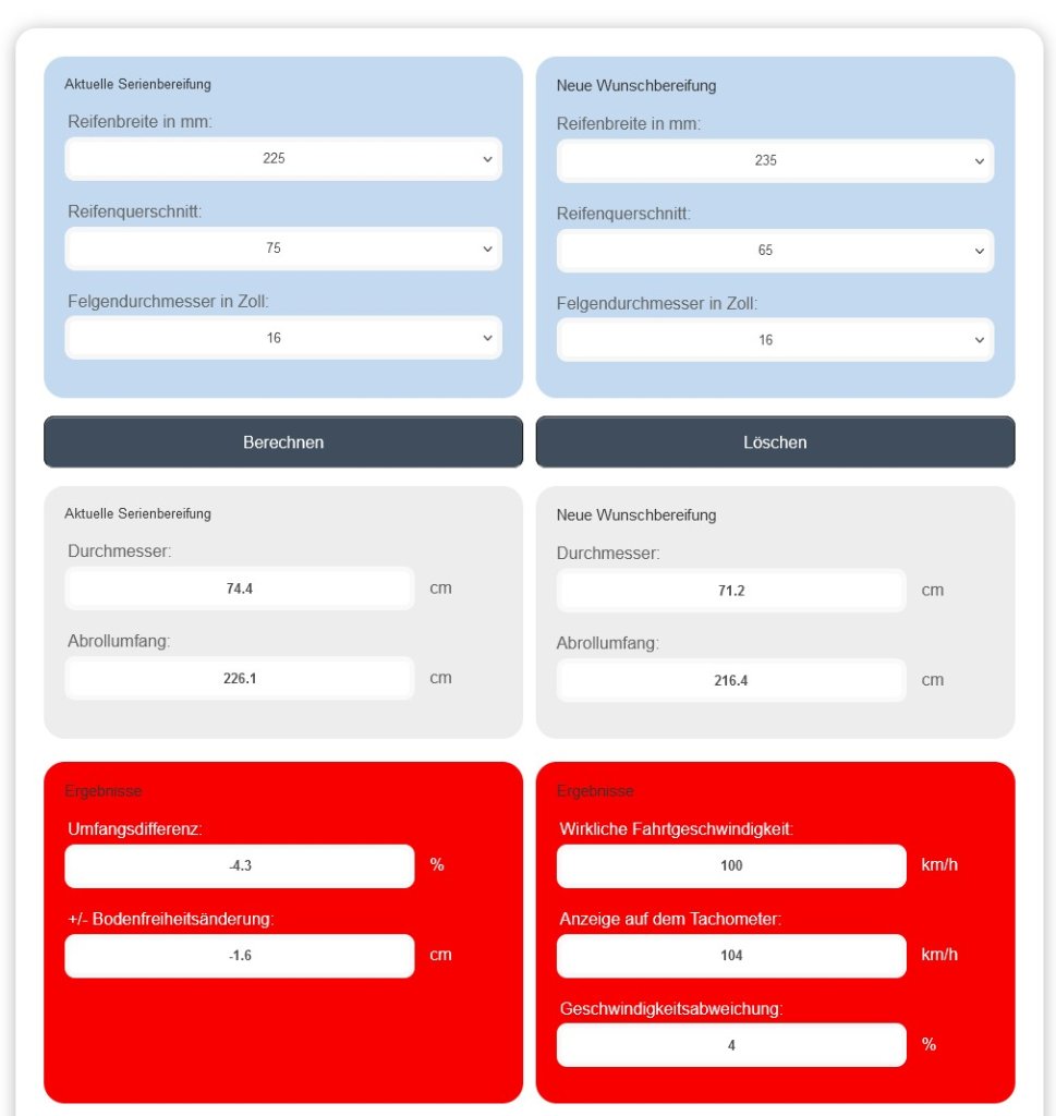 Auf jeden Fall sind mal locker 4% fake bei der 235er Bereifung...also Pi*Daumen n halber Liter schöngerechnet.