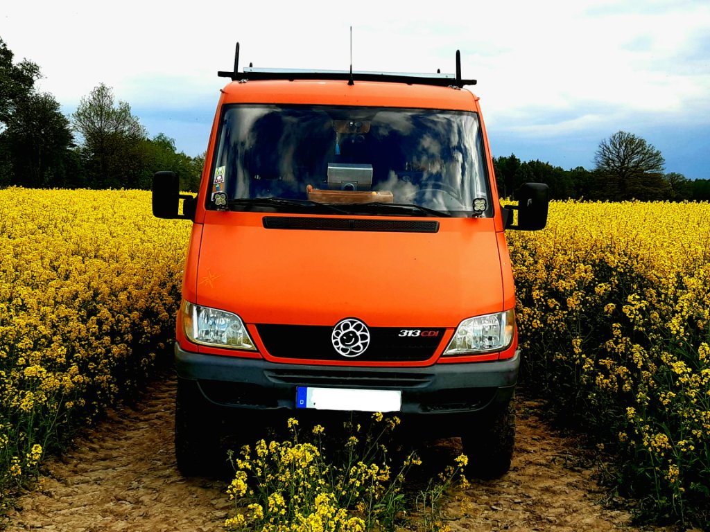 W907 / OM642 / zGG 4,25t (leer 3,55t) / Achleitner 4x4 (Mantra) / GFK-WoMoAufbau / 245-75R16 / ZLF an HA