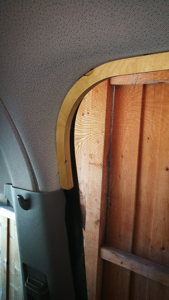 Hallo an Alle, wie viele hier lies mir das Themen Fliegengitter immer noch keine Ruhe. Etwas vernünftiges bezahlbares stabiles ist schwer zu kriegen. Da viel mir in Amazonien vor kurzem ein fowong Shop auf der versprach stabile Fliegengitter zu liefern. Nach einigem herumsuchen bestellte ich mir dann ein grosses 240 x240cm zum zuschneiden. Mit etwas Geschick und Nähmaschine könnte ich dann das Gitter auf Sprinter Grösse umarbeiten. Das Material ist richtig stabil und die Magnetverschlüsse schliessen das Gitter im Rekord Tempo. Ganz anders Kaliber als dieses Baumarkt Gelumpe. Durch das grosse Maß konnte ich den Magneverschluss außermittig Richtung Türgriff setzen. Die Ränder habe ich umgenäht und unter die Tür Dichtung geklemmt. Oben tackerte ich das Gitter auf einen Holzrahmen den ich schon für ein anderes Gitter gemacht hatte. Der Rahmen wird mit drei Schrauben befestigt. So kann das Gitter auch schnell weggemacht werden wenns mal stört.