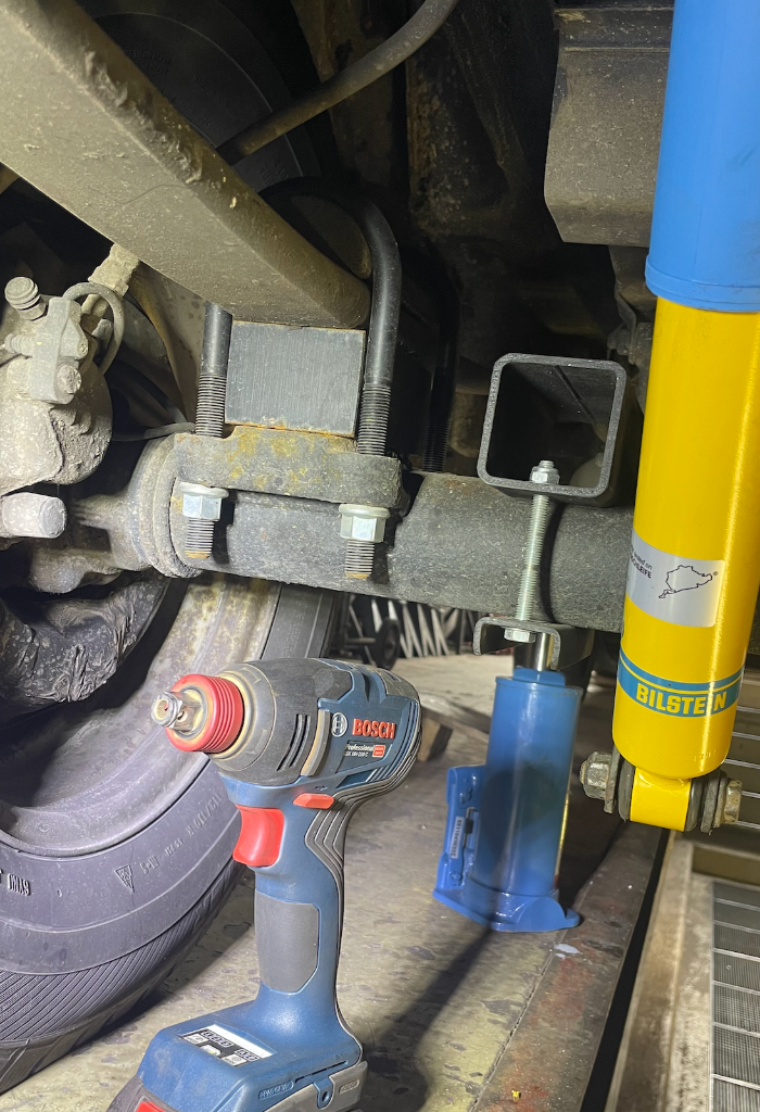 Vorher nachher bilder hab ich leider keine identischen. Hinten sind es offensichtlich die 50mm der Klötze und vorne je nach Beladungszustand 2.5-3.5cm. Und ja, das macht nen gewaltigen Unterschied. Falls ich noch Lust drauf hab, bau ich mal noch ne gesprengte Blattfeder ein um noch n paar cm rauszuholen, aber vom Fahrkomfort ist es jetztz schon, das was ich wollte.