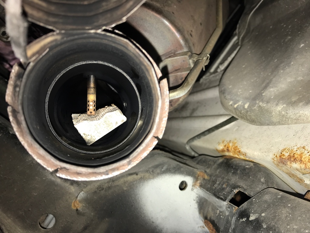Wie auf dem Bild zu sehen, scheint sich ein Teil des DPF selbstständig gemacht zu haben und ist am Abgastemperatursensor hängen geblieben.