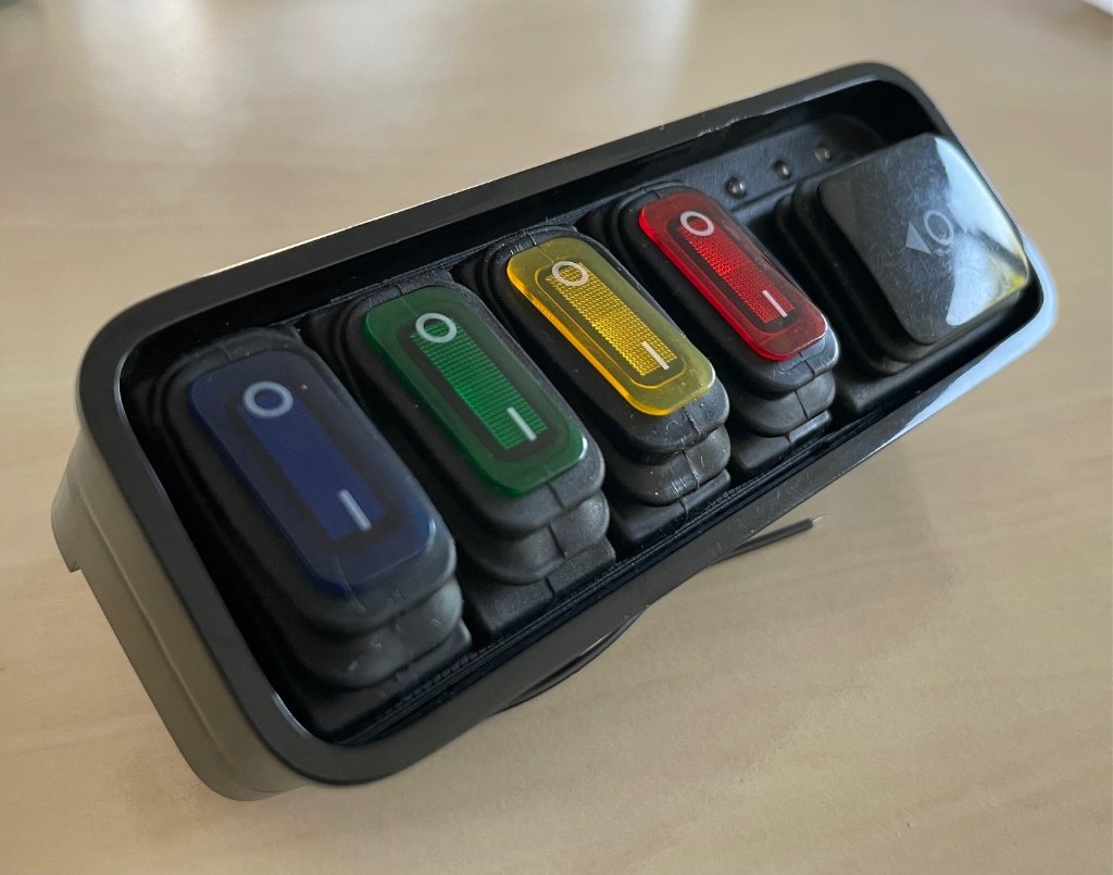 Gekauft habe ich das Auxbeam Switchpanel 6-Fach mit blauer Beleuchtung, was für mich vollkommen ausreichend ist, da sind immer noch zwei freie Plätze vorhanden.