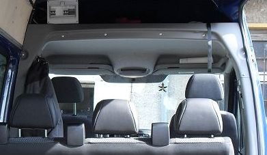 Die Blechablage über den Fahrersitze sieht prima aus. Sowas habe ich mir letztes Jahr auch (von Dutch Van Parts) eingebaut und dort sind nun alle Schuhe und Jacken untergebracht.