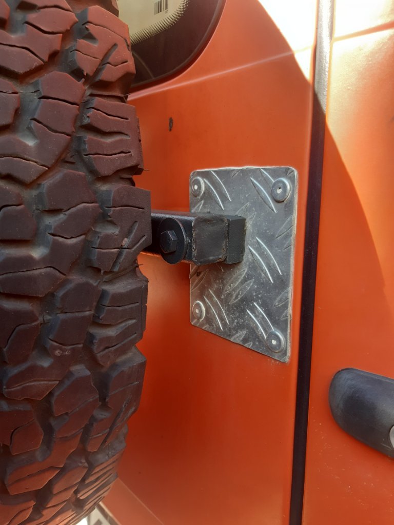 PS: nur die gepalnte Stahlscheibe mit den Aufnahmen für den Reservereifen habe ich nicht angebaut, sondern der Reifen ist mit Gurten befestigt und mit Stahlseil gesichert, hält schon einige Jahre so