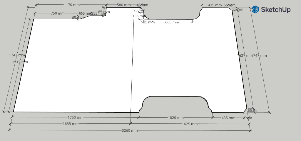 ich habe hier mal eine 3D Skizze (SketchUp) von der Bodenplatte vom LT 2 (BJ 2001) mit mittlerem Radstand gemacht und wollte sie mit euch teilen: