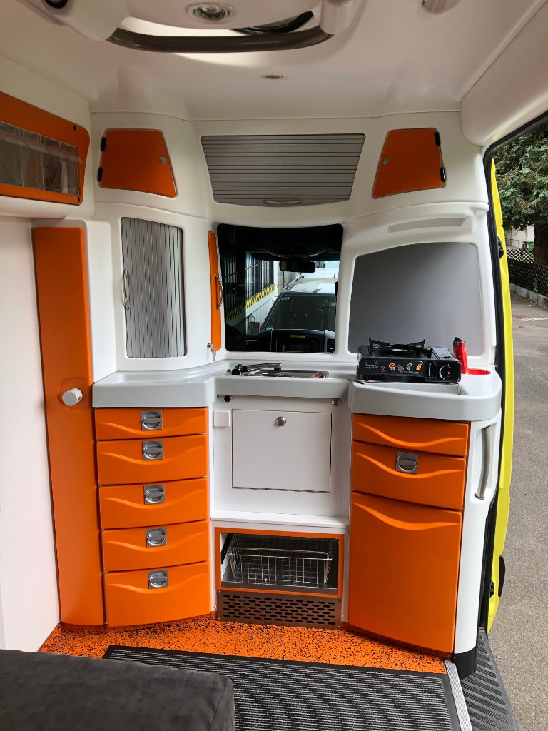 Ex RTW Ambulanzmobile, 316 CDI Kasten hoch, Baujahr 2014 umgebaut zum Womo