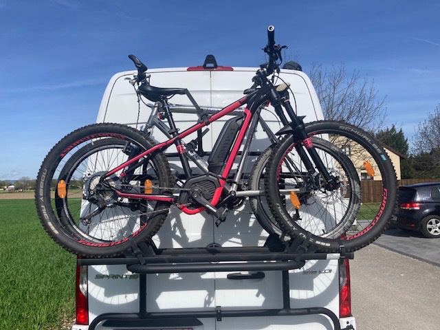 An unserem vor einigen Wochen erworbenen Hymer Free s600 ist am Heck ein Fahrradträger EuroCarry 2 von Alu-Line.