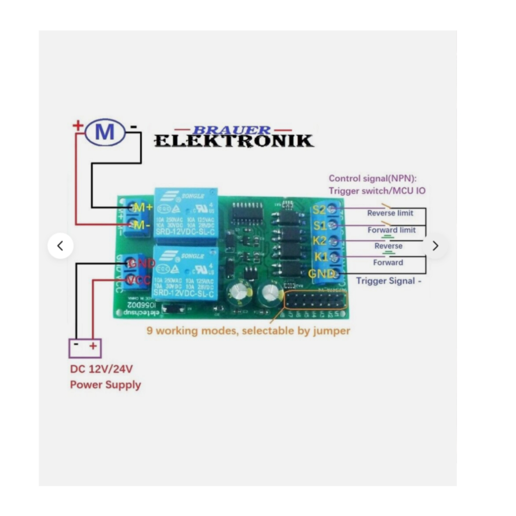 Hab mir jetzt die auf dem Bild zu sehenden Steuerplatine (15€) und ein Gehäuse (6€) besorgt. Funktioniert einwandfrei mit den integrierten Endschaltern in der Trittstufe. Auch eine Kontrollleuchte oder Summer, damit man nicht mit ausgefahren Trittstufe losfährt, kann man anschliessen. Danke nochmals für die Informationen zu den Kabelfarben. Wen der Schaltplan interessiert dem kann ich noch Bilder zu den modifizierten Kabelfarben und Anschlüssen machen.