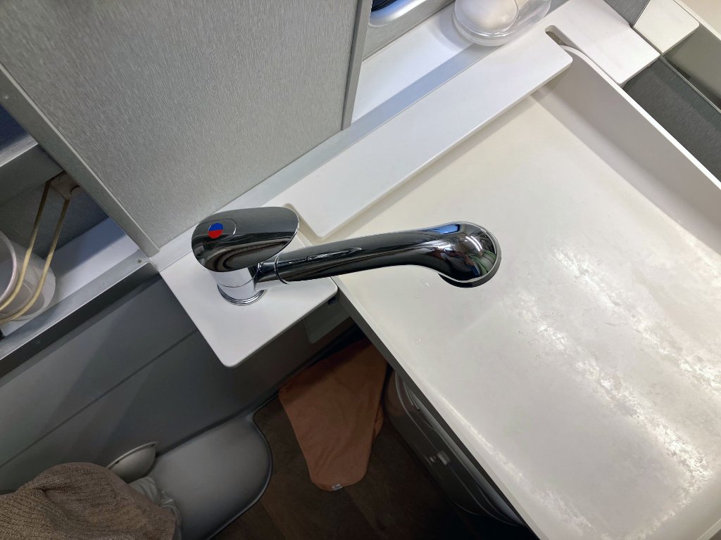Das Originalwaschbecken vom GCS gibt es beim Hersteller Stengele nicht direkt zu kaufen. Es gibt aber bei CargoClips eine Version mit dem Push-Hebel rechts für z. Z. 750 EUR. Dieses ist auch besser, weil der Wasserhahn etwa an der alten Stelle bleibt und man nichts verlängern muss. Lediglich der Abwasserschlauch muss verlängert werden.