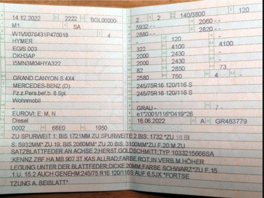 Zurück auf 4,1 war dann aufwendiger als gedacht. Zwei MB Werkstätten konnten oder wollten mir nicht helfen. Der Tüv wollte eine Vollabnahme machen. Die erste Dekra Station "durfte" das angeblich nicht und die zweite Dekra Station hat es dann auf Grundlage der CoC Papiere gemacht, in denen die Auslieferung als 4,1to vermerkt war.