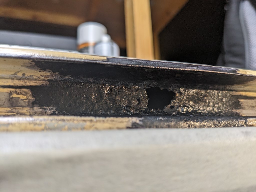 Ich habe nun erstmal Rostbehandlung durchgeführt und so gut es geht geschützt, ich fürchte am Ende komme ich nicht um Schweißarbeiten herum. Das ist leider schon eine echt blöde Stelle.