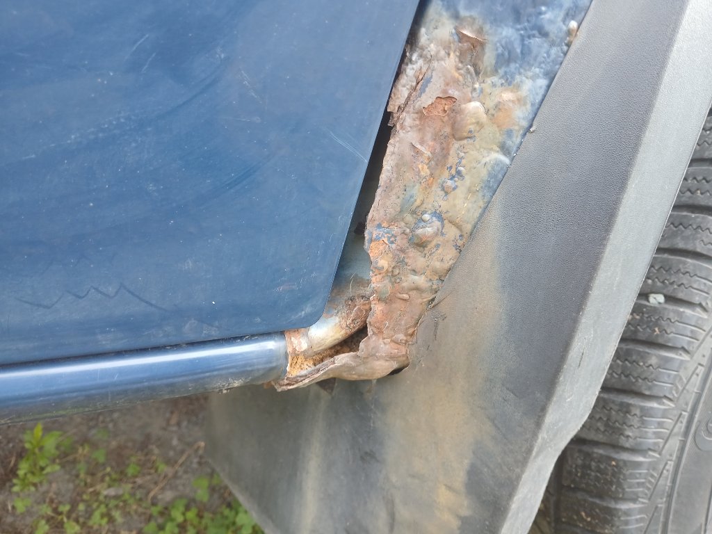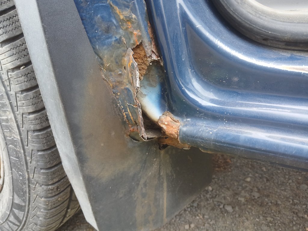 Sofort nach dem Aussteigen aus meinem 20 Jahre alten rostfreien W203 fiel mir ein Stück fehlendes Blech auf. Ein Stück Radlauf fehlte beidseitig. Der Rostwurm hatte ihn sich geholt. Der Rahmen rostete allerorten, vor allem um die Federaufnahmen hinten- böse Sache. Der Klimakühler des Aufbauaggregates war dahinoxidiert. Die vorderen Gelenkwellen waren versifft, das Differential hinten ölfeucht. Der Lack stumpf, aber RICHTIG stumpf. OK, den Riss im vorderen Stoßfänger hatte ich schon gesehen und als Preisnachlass- Grundlage gebucht.