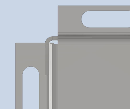 Aktuell ist die Konstruktion so, dass durch die großen Löcher an beiden Seiten die Luftanschlüsse der Heizung rausschauen würden. Um sie in der Kiste montieren zu können, müssten also die beiden kurzen Enden leicht auseinander gebogen werden, bis die beiden Luftanschlüsse durch die Löcher rutschen. Deswegen hat die Kiste auch keine Vernietung/Verschraubung an den Kanten.