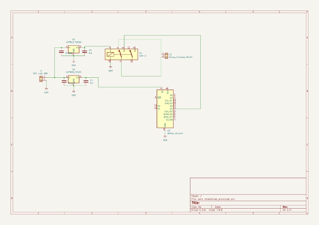Hier zu habe ich einen ESP Microcontroller WEMOS D1 mini ( 2,50€ - 5€ ) verwenden ein 12V Relais, zwei Festspannungsregler und ein vier Folienkondensatoren.