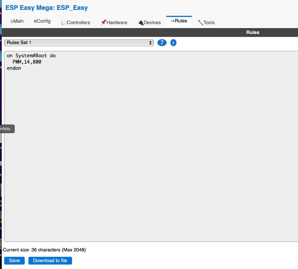 Damit der Lüfter immer mit der selben Drehzahl startet habe ich noch folgenden Code im Webinterface eingefügt.