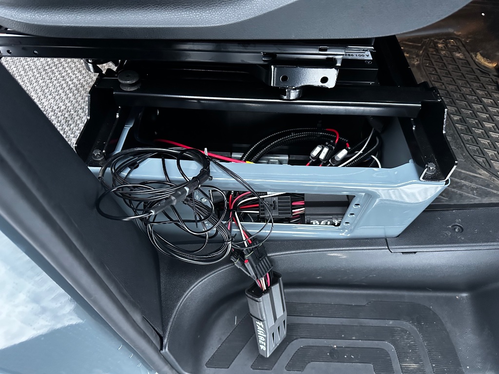 Trotzt Ansage das die Aufbaubatterie noch getauscht wird, und sich dann hier die Starkstrom-Busbar´s etablieren, haben die "Alles" unter den Beifahrersitz geworfen.