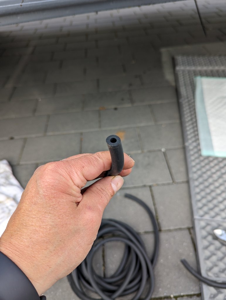 Zusätzlich wurde die gesamte Kraftstoffleitung mit einem Mossgummischlauch (Foto) umhüllt und entkoppelt befestigt.