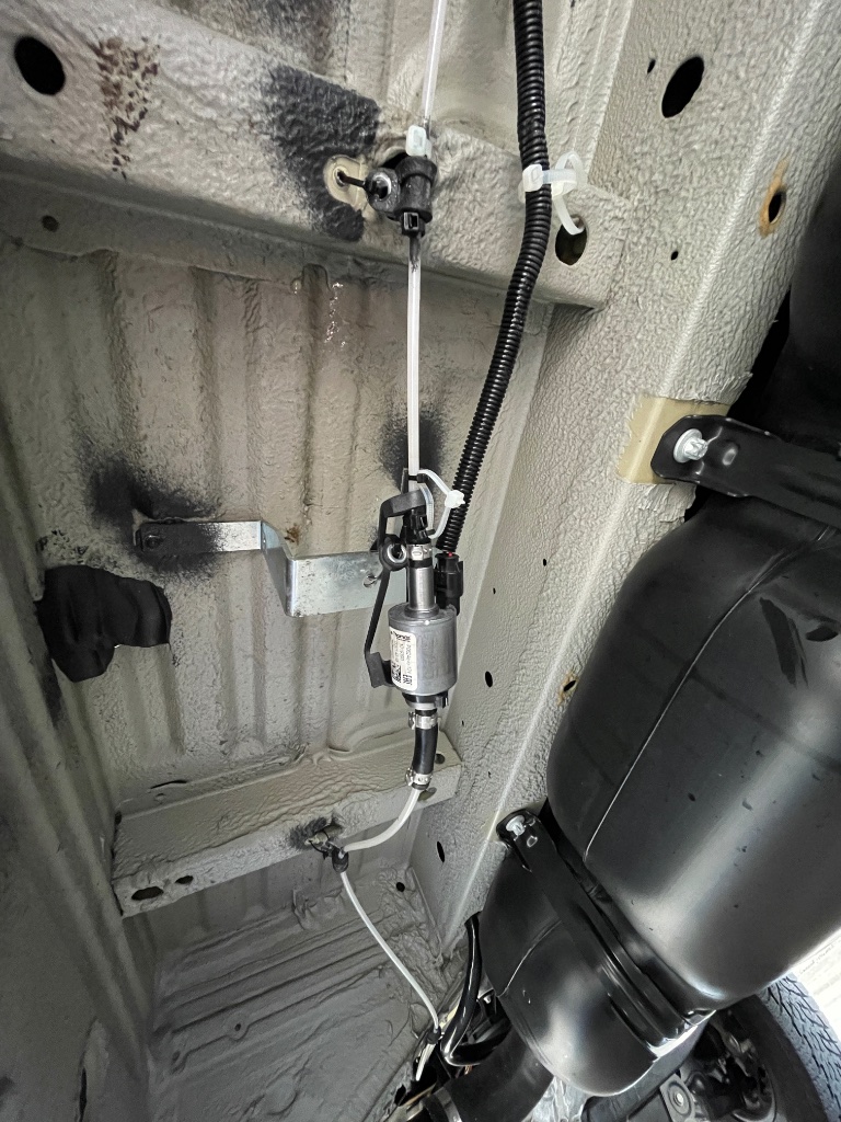 fahrzeug ist 2023. wurde einfach durch truma die hängende pumpenhalterung unten an dem bügel montiert welcher am bodenblech befestigt ist?