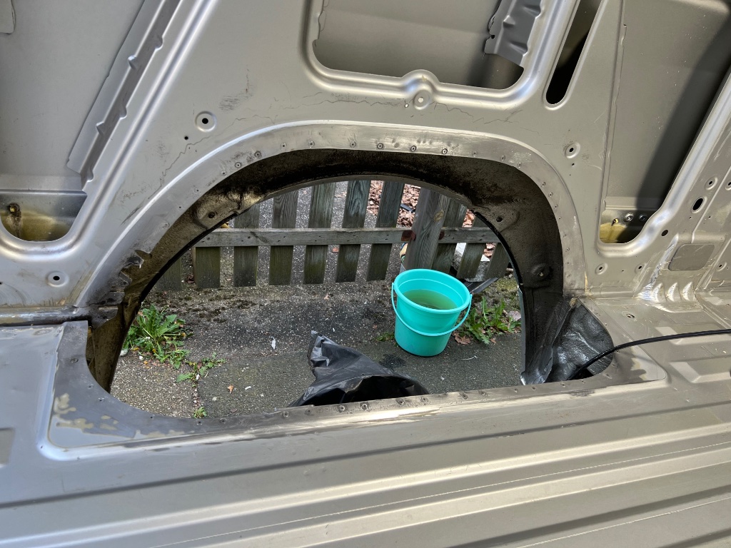 Ich habe in meinem Leben zuvor nie an Autos geschraubt, geschweige denn, an Karosserien herumgefummelt. Nachdem ich mich in Fachkreisen erkundigt und all meinen Mut zusammengerafft hatte, riss ich die Radhäuser raus und habe sie gegen Neue ersetzt.