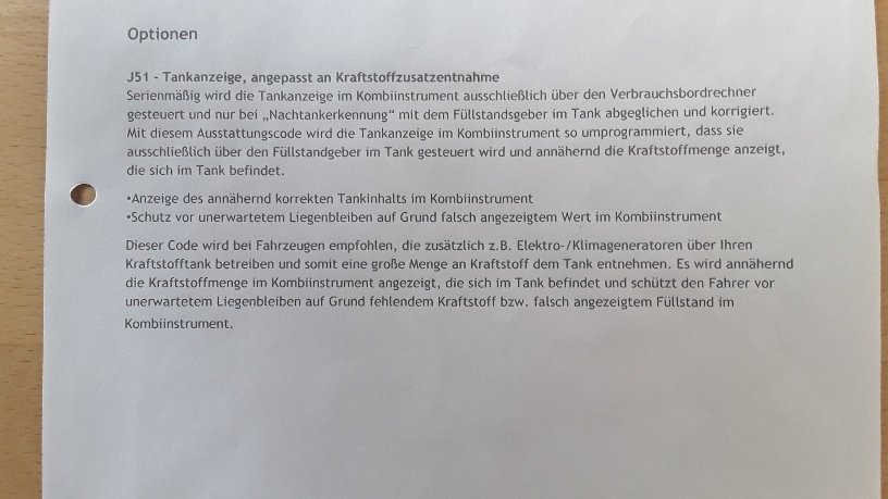 Tankanzeige zeigt noch 2 Balken, also noch keine Reserve und über 100 km Restreichweite. ...Etwas Diesel nachgefüllt und sofort ist er angesprungen. Ich habe einen 90 l Tank und konnte 75 l nachtanken.