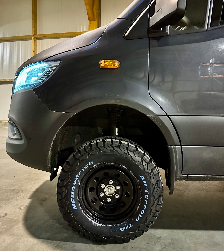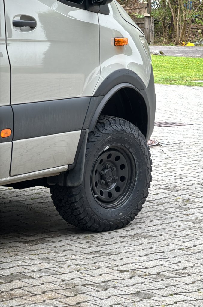 da wir uns neue Felgen kaufen müssen, und wir momentan die Mercedes Stahl Felge in schwarz 6,5 x 16 ET 54 mit 245/75/R16 BF Goodrich Reifen fahren, sind wir am überlegen uns die Felgen von DOTZ Modular dark 8x16 ET37 zu kaufen.
