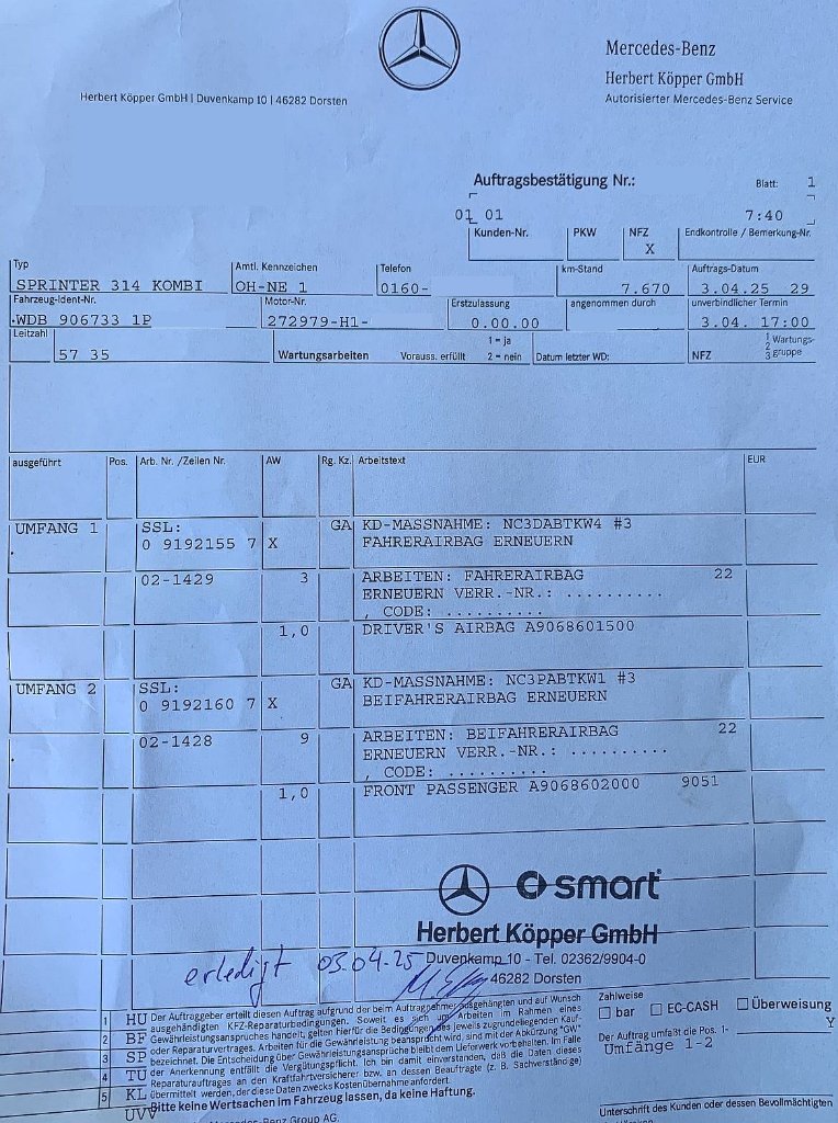 du bist mit dem Sprinter von Leipzig nach Recklinghausen gefahren?Rosi hat geschrieben: 28 Mär 2025 11:14 Der Fahrerairbag wurde erneuert, aber die Auskunft ist ad hoc noch nicht aktualisiert.