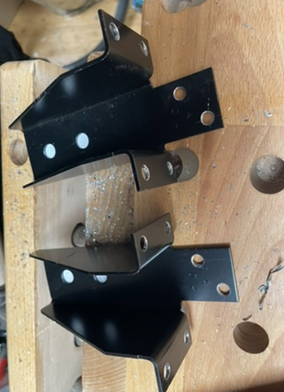 2. Bohren und Entgraten - bei den seitlichen Laschen kommen 2 Bohrungen je 6,2mm rein, bei der vorderen Lasche auch 2 Bohrungen