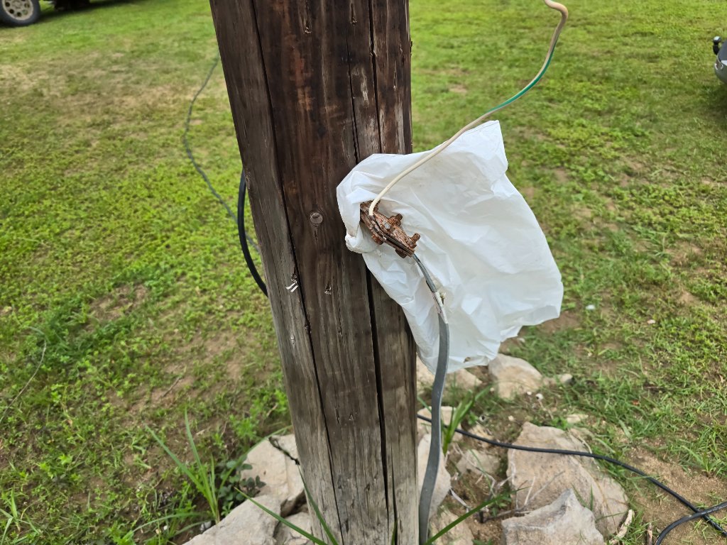 Immer noch Montenegro. Blick auf die Bucht von Kotor und Elektroinstallation auf montenegrischem CP.