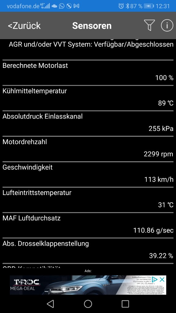 Also, die AGR ist bei Leistungsverlust + "Turbogeräusche" (unterer Drehzahlbereich+Volllast) durchaus ein potenzieller Kandidat für Probleme. Das oben beschriebene "Kicken" bei 2400 U/1 ist damit auch erklärt und nun behoben.