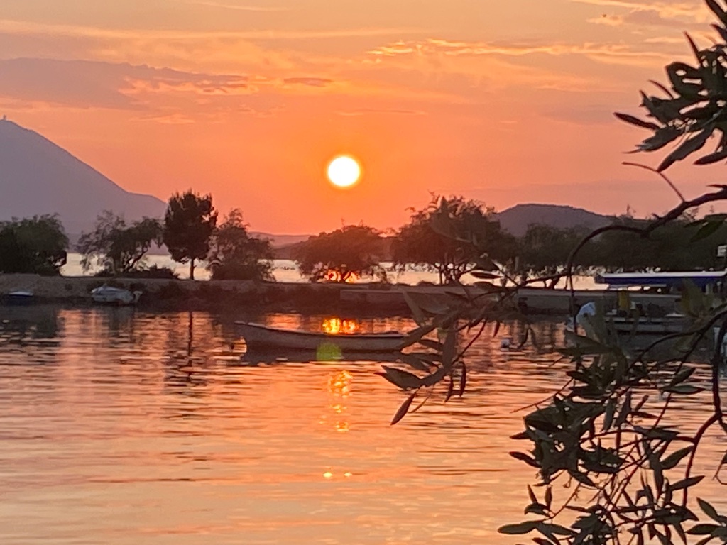 Wir hoppeln zurück zu Luigi. Wir sparen heute die Lek, kochen selbst und schauen der Sonne beim Untergehen zu.